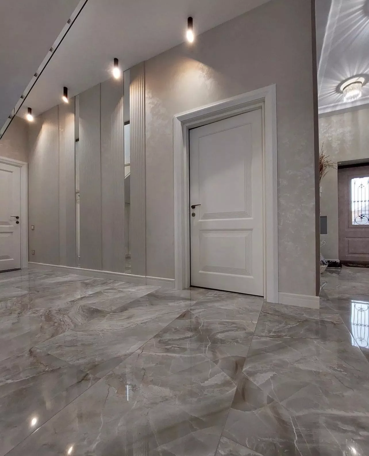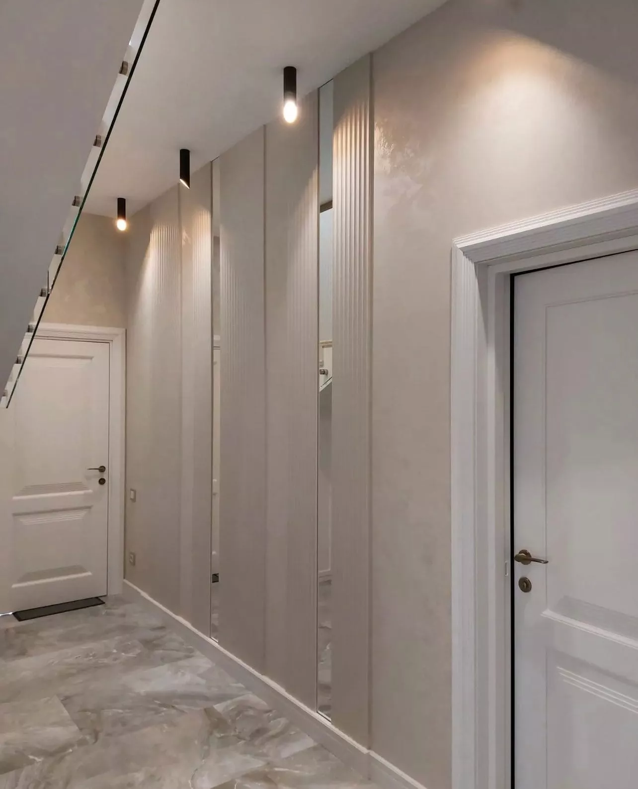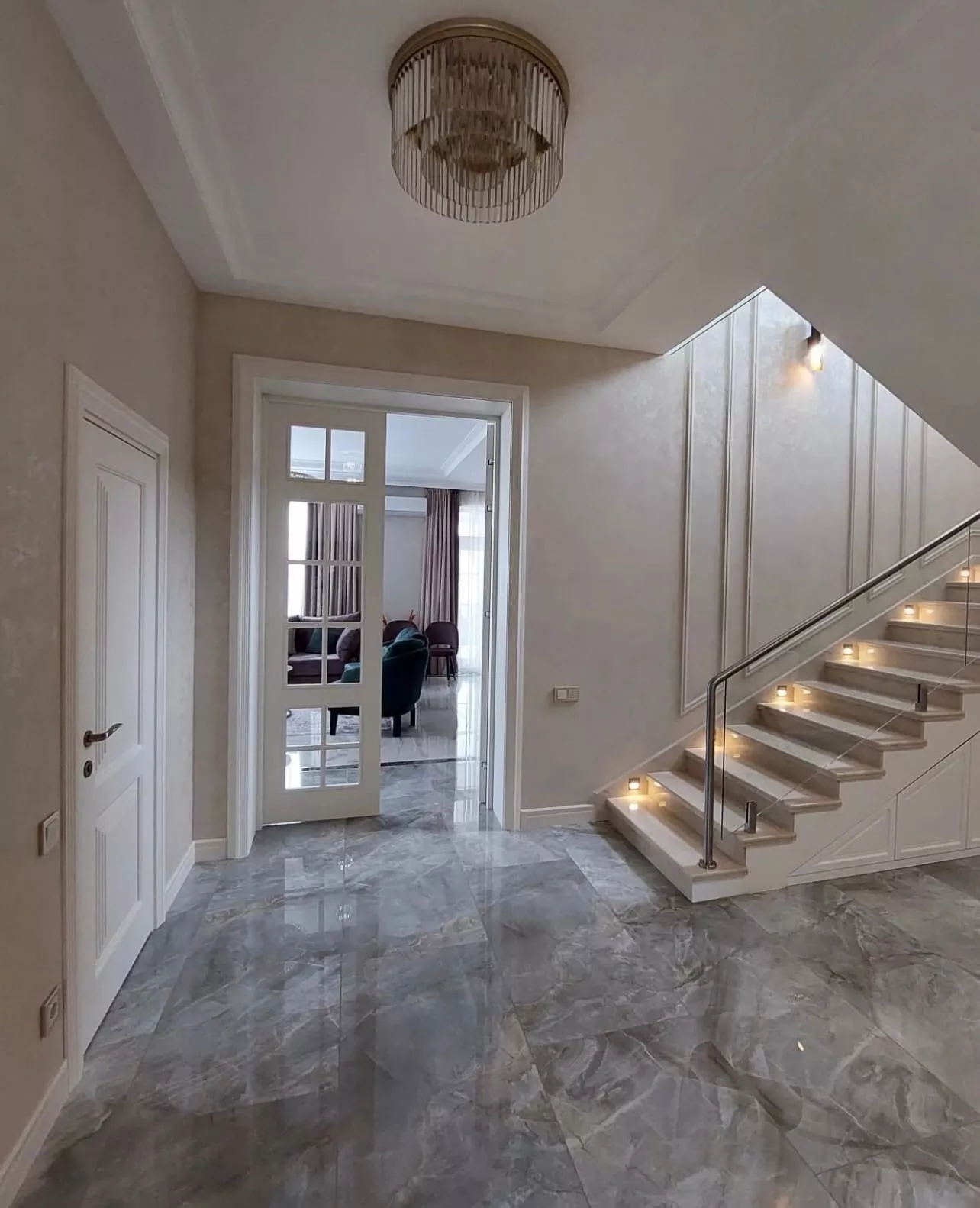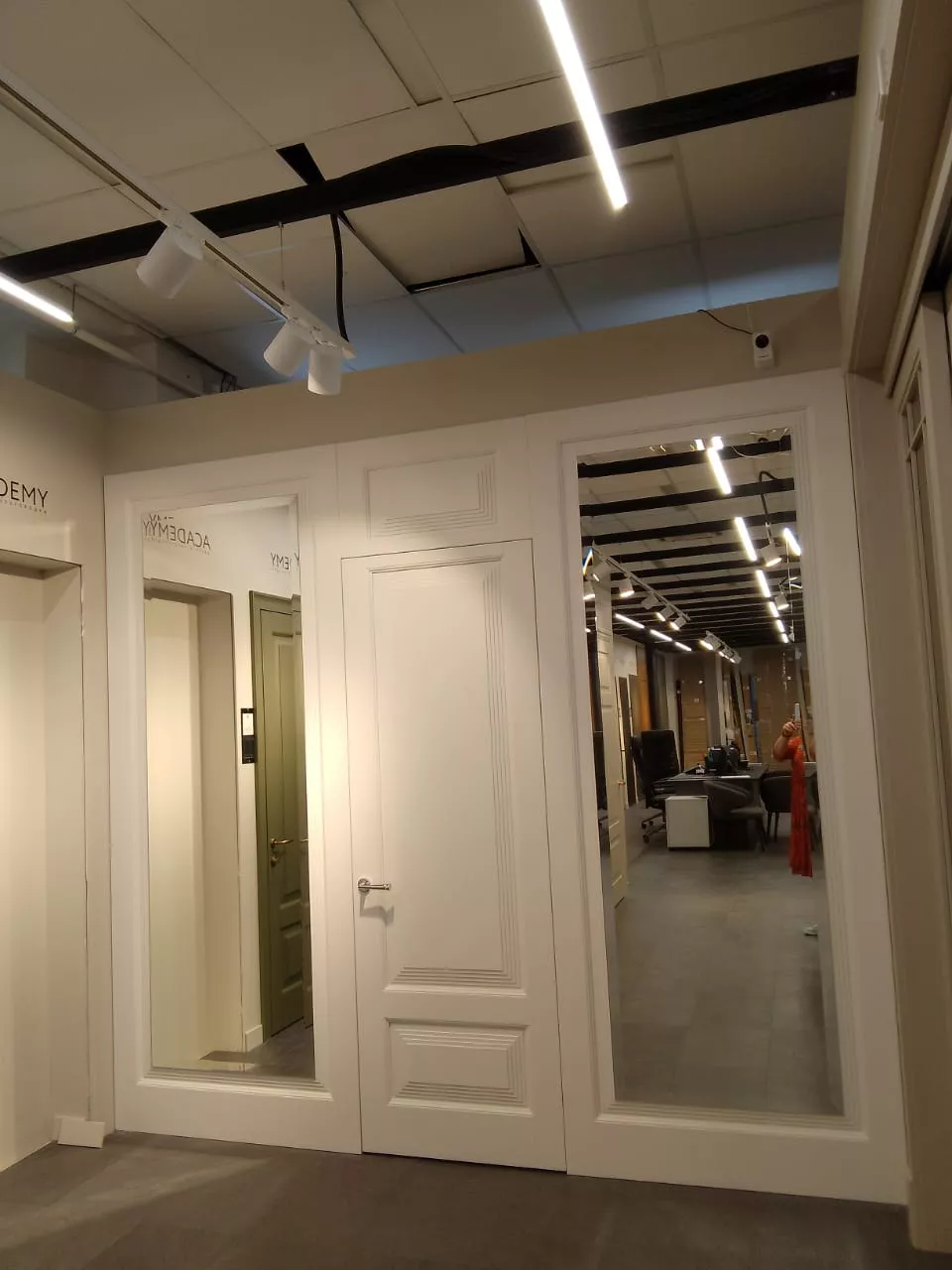 Элегантная дверь с экспрессивными формами. В ее стиле при кажущейся массивности присутствует необычная легкость. Строгие формы фрезерованных дверных панелей удивительным образом сочетаются с широкими наличниками трапециевидной формы, создавая уникальную композицию, которая вызывает подлинное восхищение.