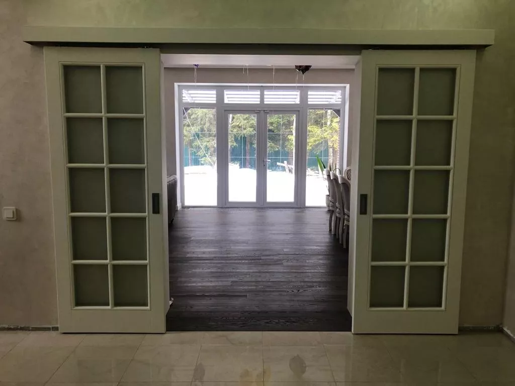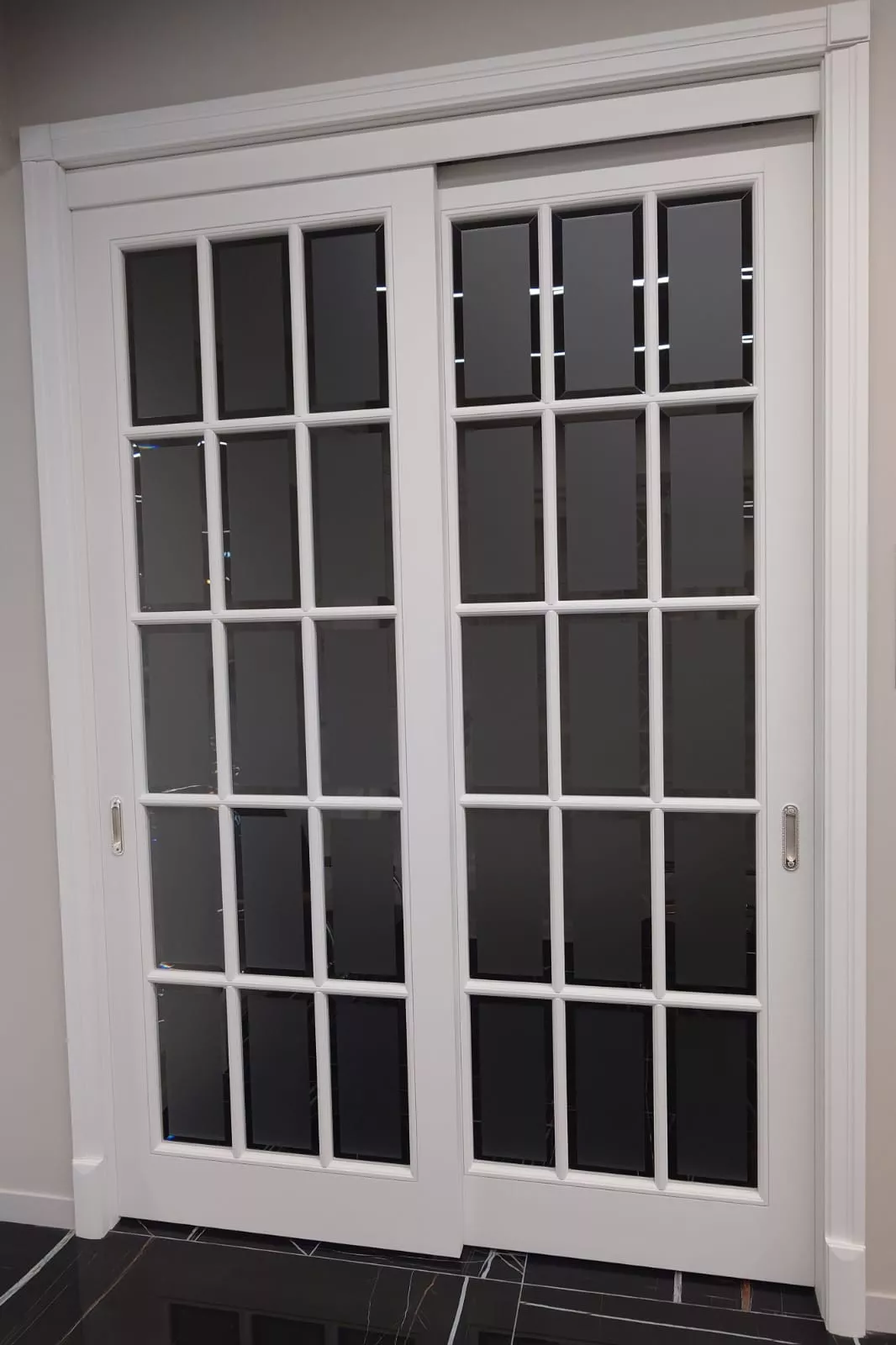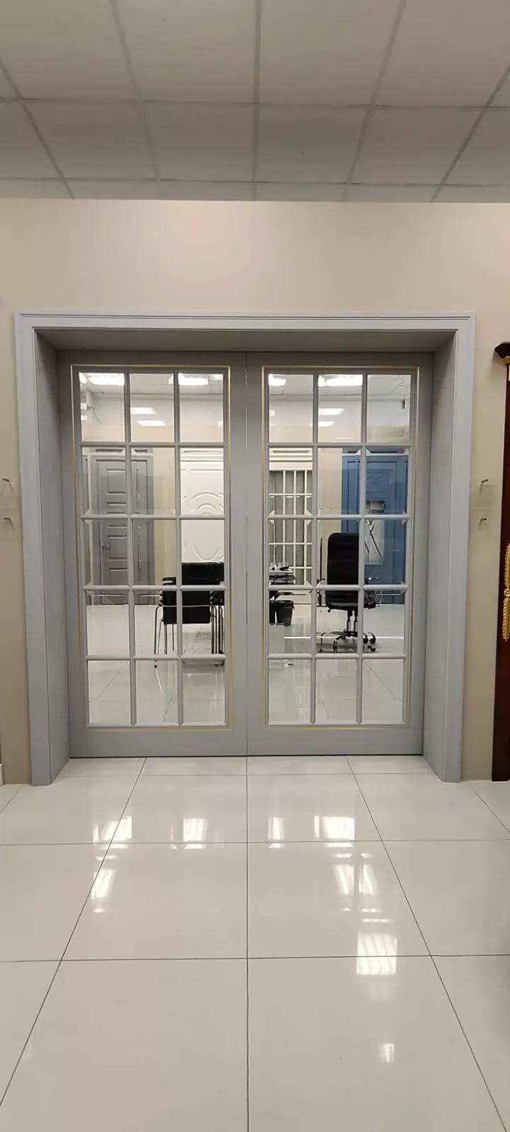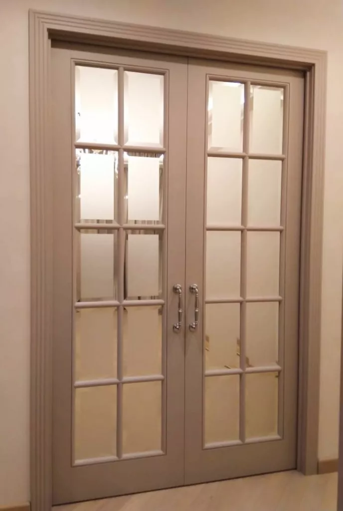 пантографирования, с правильными пропорциями. Два вертикальных руста подчеркивают их красоту. Для полотен под стекло предлагаются различные варианты стекол. Стекла устанавливаются с помощью фигурного штапика. Доступна модель с «английской решеткой». Различные варианты окрашивания делают двери важным элементом в интерьере, а при желании – акцентом.