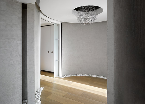 Eclipse Circular Estensione позволяет установить пенал для двух радиусных раздвижных дверей внутри радиусной стены. Две створки открываются с эффектом, похожим на эффект театральной сцены, увеличивая окружающее пространство.