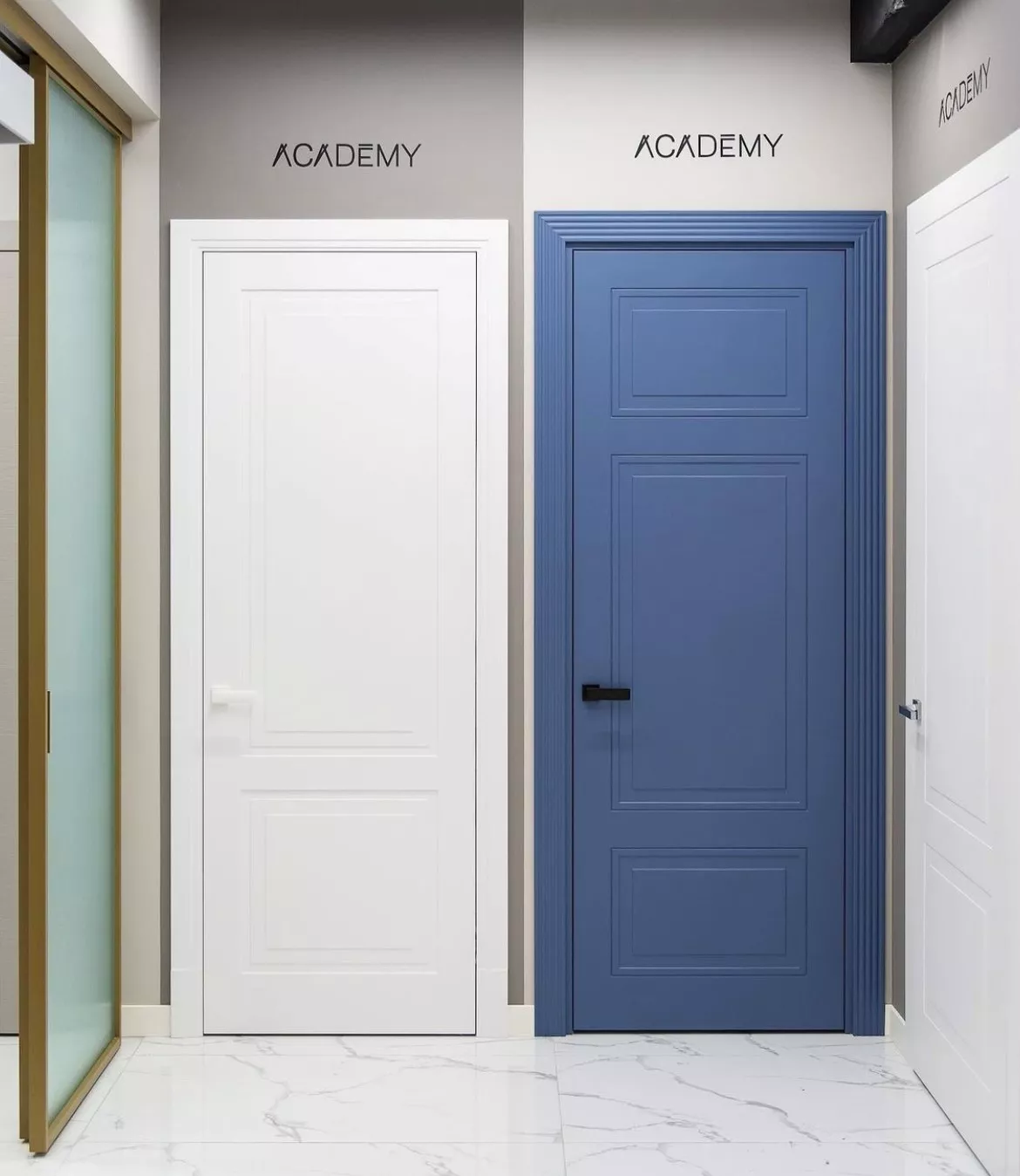 • Толщину дверного полотна (в зависимости от коллекции, открывания и типа короба толщина полотен производства Academy до 65 мм).