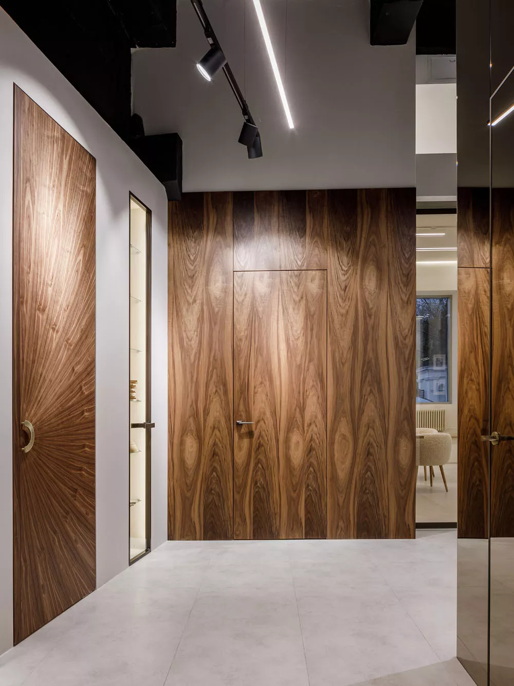 • Эстетика: Отсутствие видимых петель создает эффект "невесомости" двери, что особенно актуально для современных интерьеров в стиле минимализм, хай-тек или лофт.
