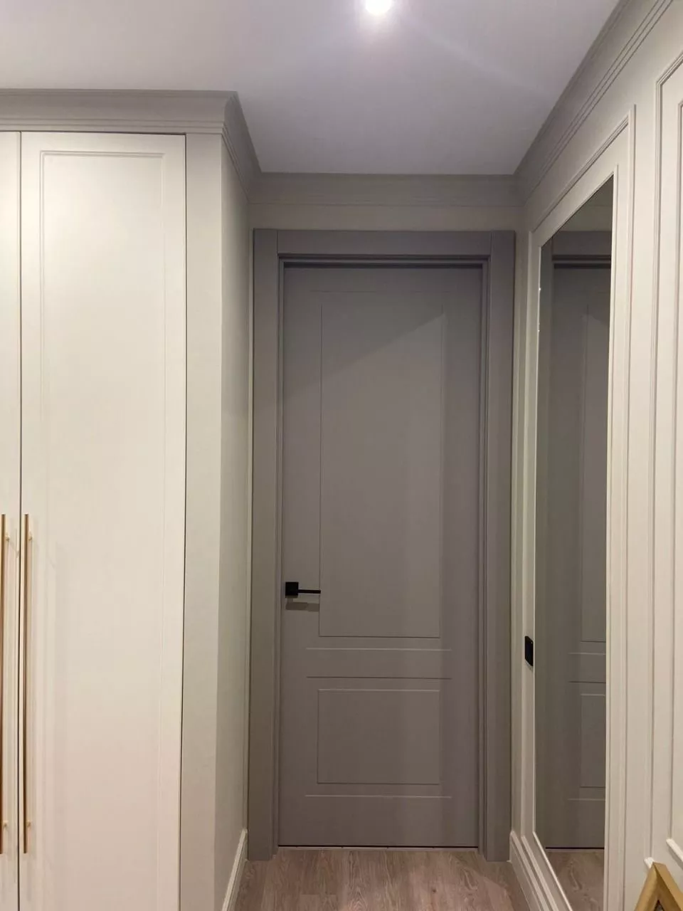 - Минимализм: Гладкие двери без рисунков или с небольшими вертикальными либо горизонтальными рисунками, молдингами.